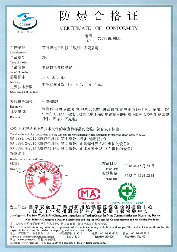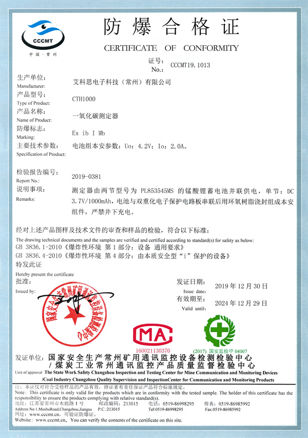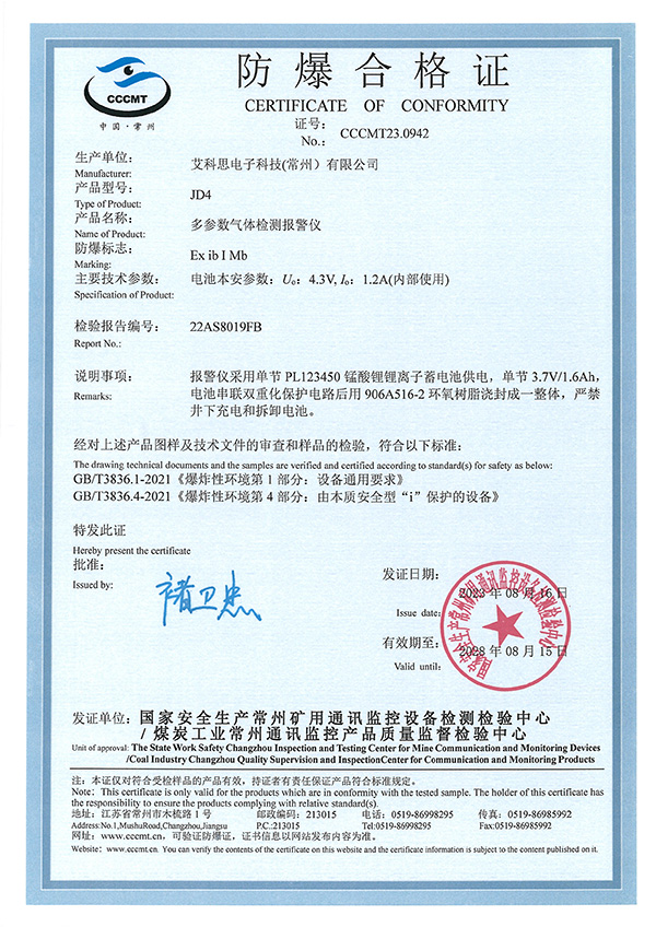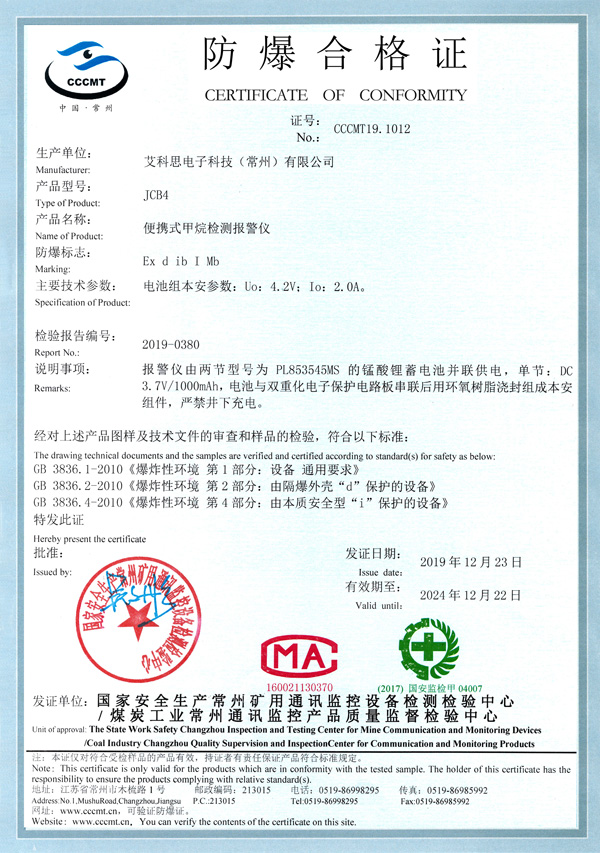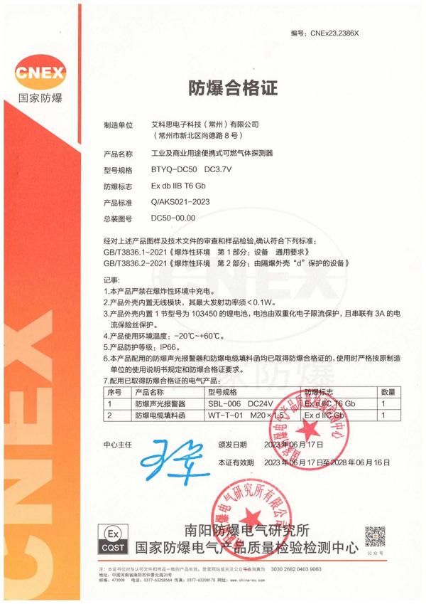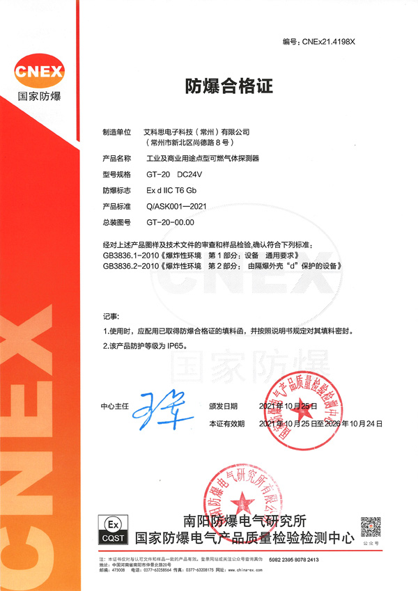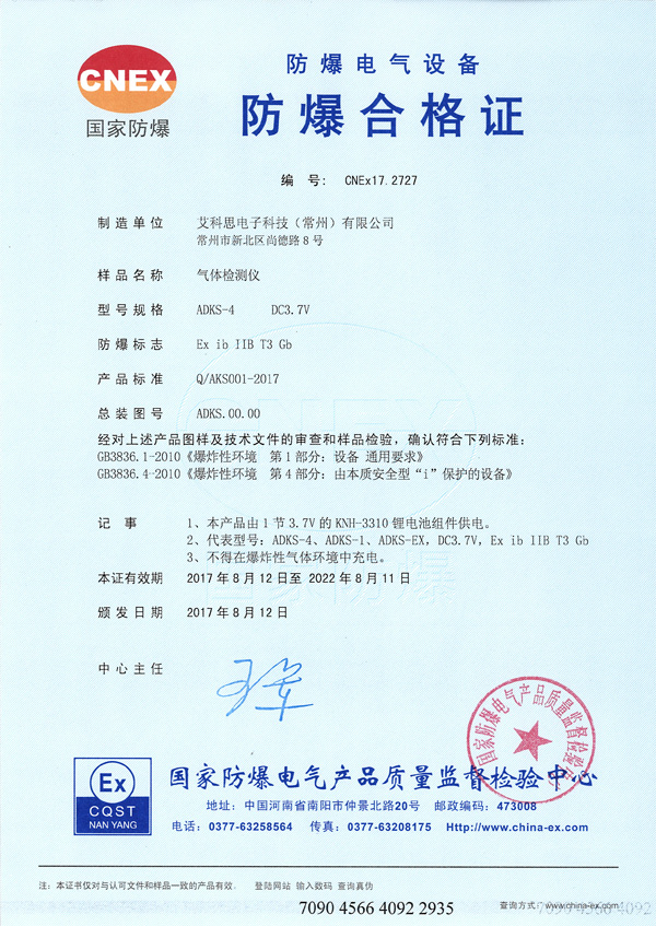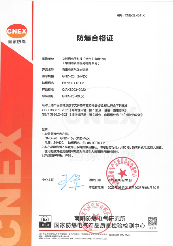 防爆合格證書