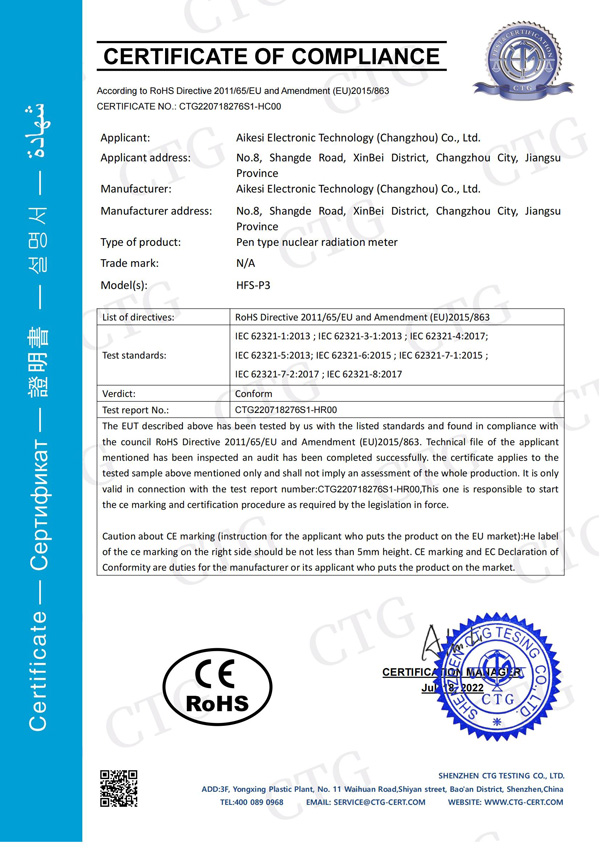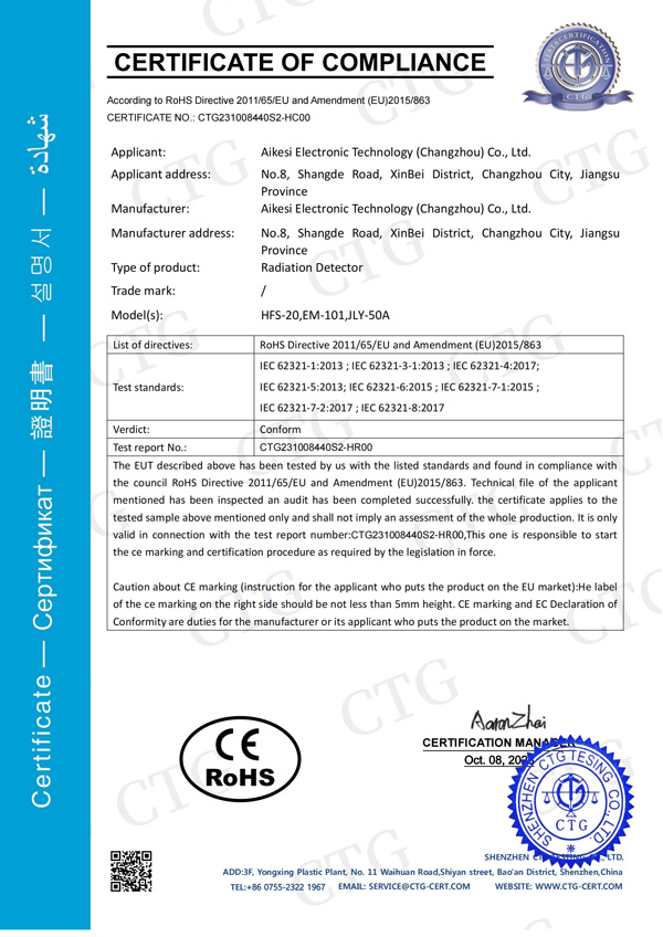 CE、FCC、ROHS證書