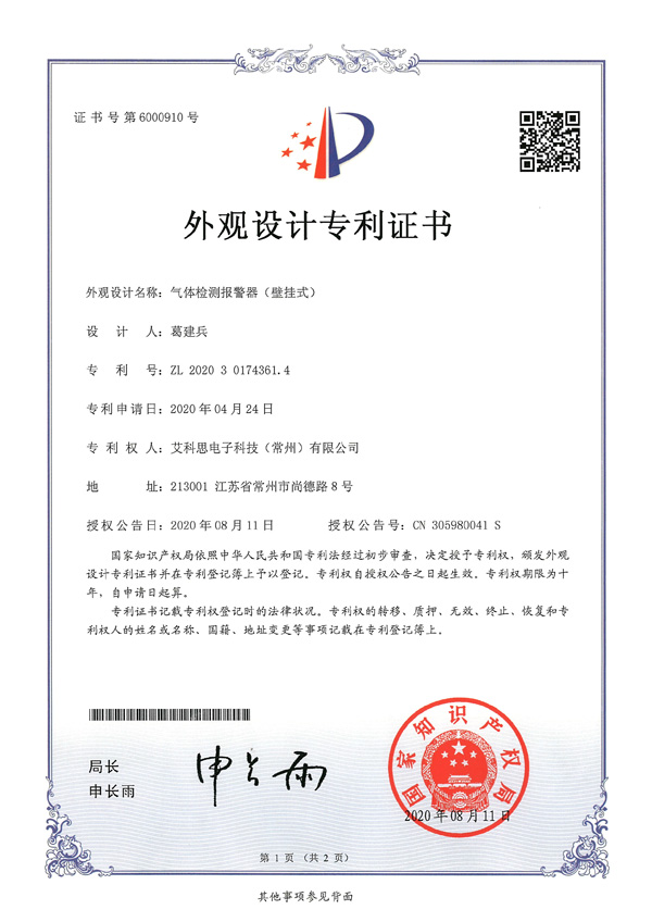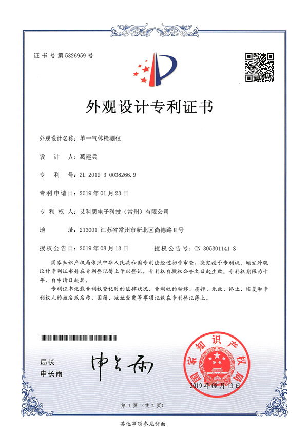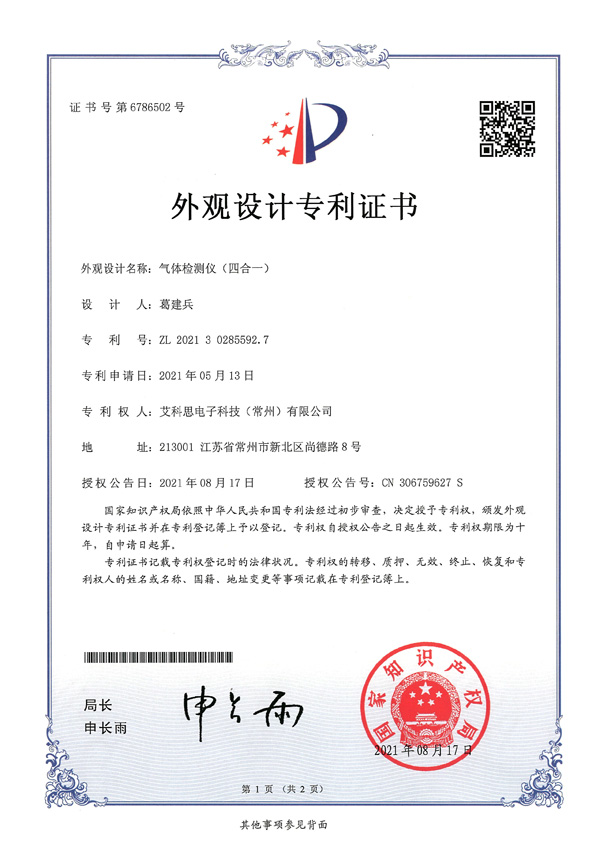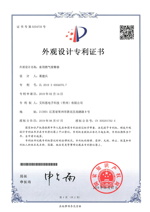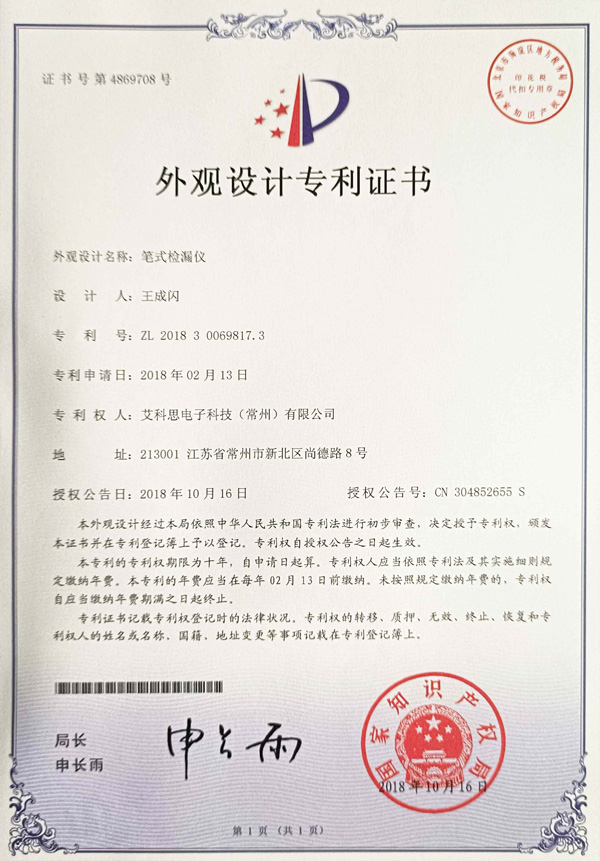 外觀專利證書