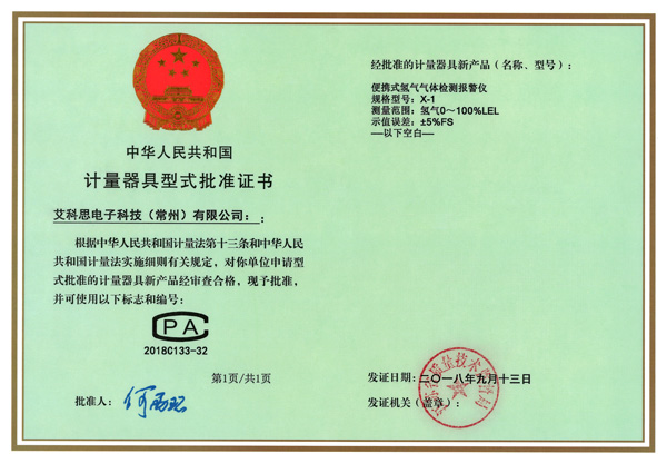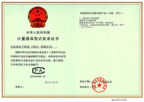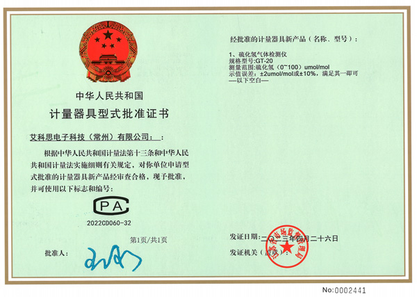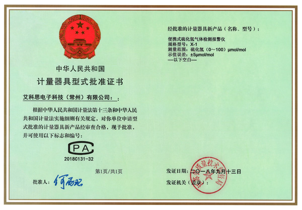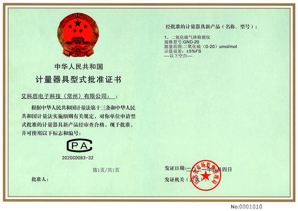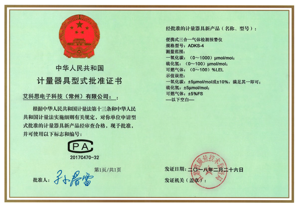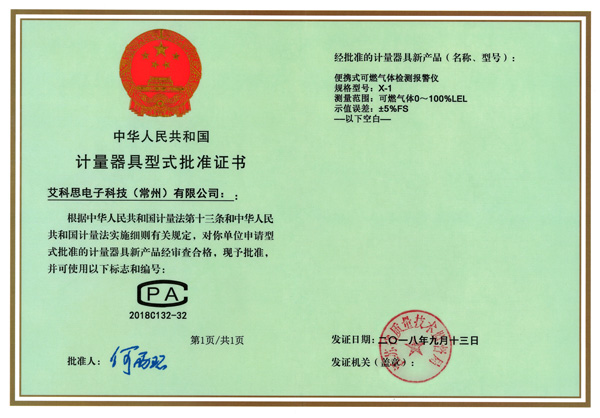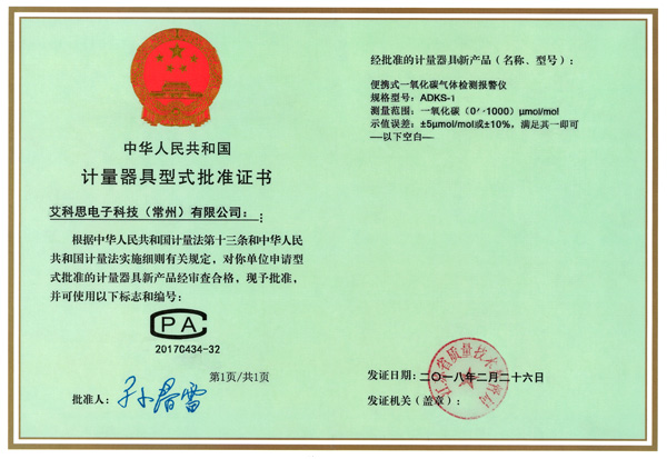 型式批準(zhǔn)證書